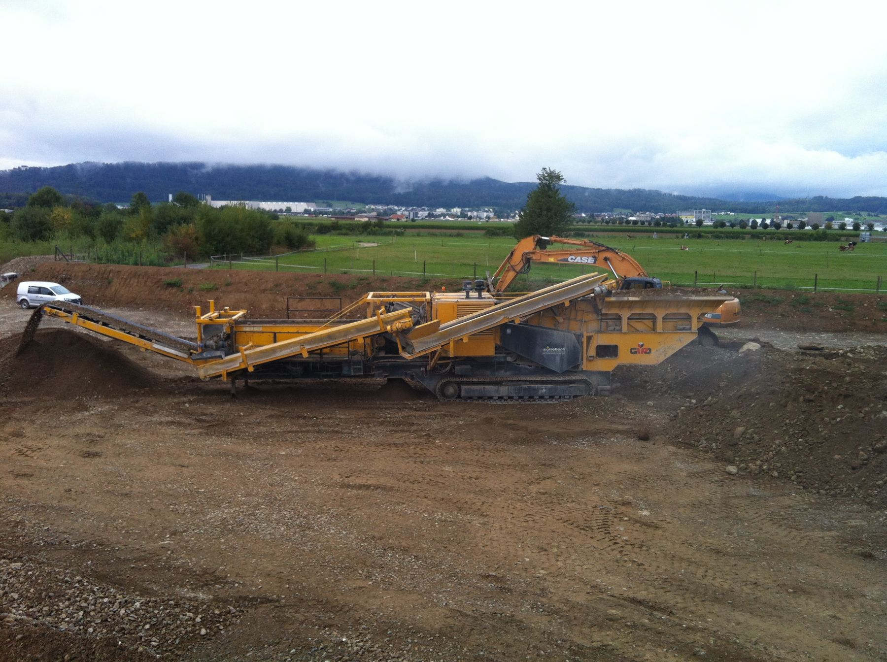 Fünf unserer raupenmobilen Prallbrecher des Typs GIPO RC 130 KOMBI sind Spezialanfertigungen. Diese wurden nach Vorgaben des Firmeninhabers Fritz Mühlebach und in enger Zusammenarbeit mit und durch den Anlagenhersteller GIPO in Seedorf UR gebaut. Einzigartig an diesen Mühlebach-KOMBI-Anlagen sind die integrierten, horizontal liegenden Siebmaschinen der Marke Cedarapids mit 2 oder 3 Siebdecks.